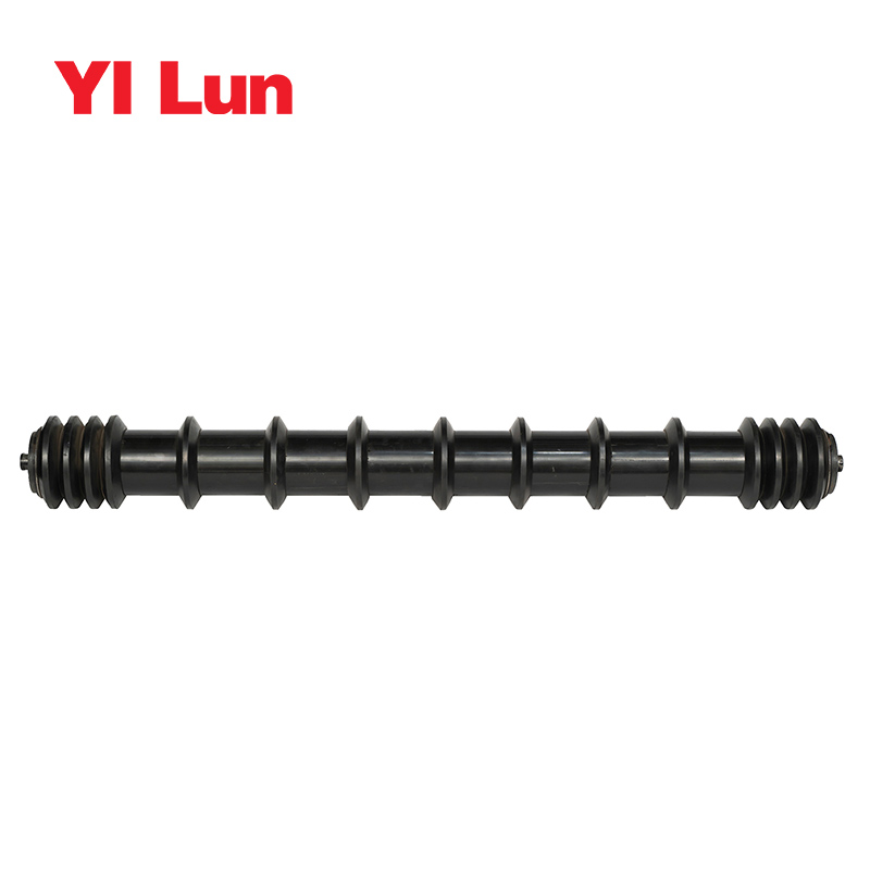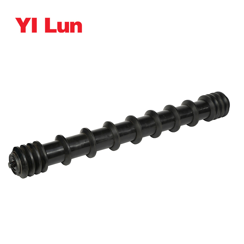 Гребнеобразные ролики в основном используются на обратной стороне ленточных конвейеров, и их количество невелико. Обычно используемые гребнеобразные ролики расположены с гребнеобразными кольцами по обе стороны конвейерной ленты, а гребенчатые кольца расположены через определенные промежутки. середина. Гребнеобразный ролик покрыт кольцом из твердой резины, которое играет важную роль в предотвращении скольжения конвейерной ленты и ее очистке. Специально используется для конвейеров, транспортирующих липкие материалы! Гребенчатые катки подходят для горнодобывающей промышленности, доков, угля, электростанций, коксования, экспортной торговли и т. д. Технические характеристики: Характеристика высокоэффективного и долговечного гребенчатого ролика заключается в том, что обычный ролик непрерывно покрыт гребенчатыми кольцами. После прессования и сборки на обоих концах обычного ролика и внутреннего кольца устанавливаются перегородки. Перегородка и обычный ролик соединены. Ролики сварены между собой. 对于铁矿砂的运输,运输胶带的清洁很困难,因为铁矿砂和运输胶带附着力较强,为此在梳形圈内安装有通电线圈,通电线圈内间隔的导通直流电流,梳形圈的安装有通电线圈的一端接触运输胶带时直流电导通,产生磁场和磁力,将附着在运输胶带上的铁矿砂吸到梳形圈上,梳形圈的安装有通电线圈的一端离开运输胶带后直流电关闭,磁场和磁力消失,将附着在运输胶带上的铁矿砂抛撒在接料盆中。 通电线圈的开关的外壳是一个管状结构,开关外壳下端两侧接有导线,开关外壳内有一活动的铜块,当梳形圈的安装有通电线圈的一端接触运输胶带时,铜块下落将通电线圈的导线接通,当梳形圈的安装有通电线圈的一端离开运输胶带后垂直向下时,由于重力作用,铜块下落将通电线圈的导线断开。 这样的结构使梳形托辊和运输胶带的压强减小,运输胶带的使用寿命延长,运行更加平稳。对于铁矿砂的运输在梳形圈中安装了通电线圈后,清洁更有效了。
